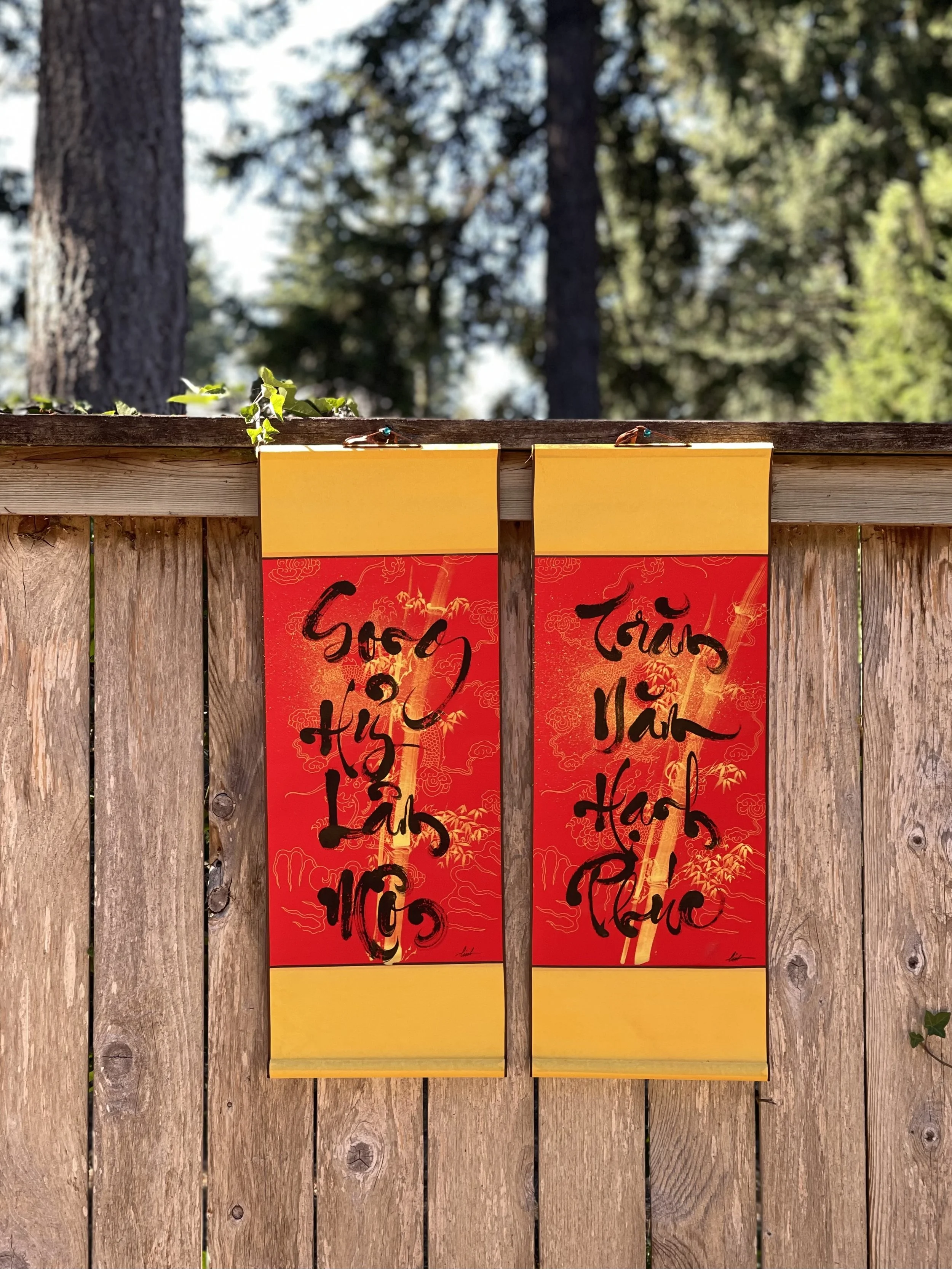 Each custom scroll is hand-painted by my father & written by me using traditional Vietnamese calligraphy techniques. Whether it’s a blessing, a meaningful word, or your name in Vietnamese, your scroll is created as a one-of-a-kind heirloom you can cherish or gift with love.